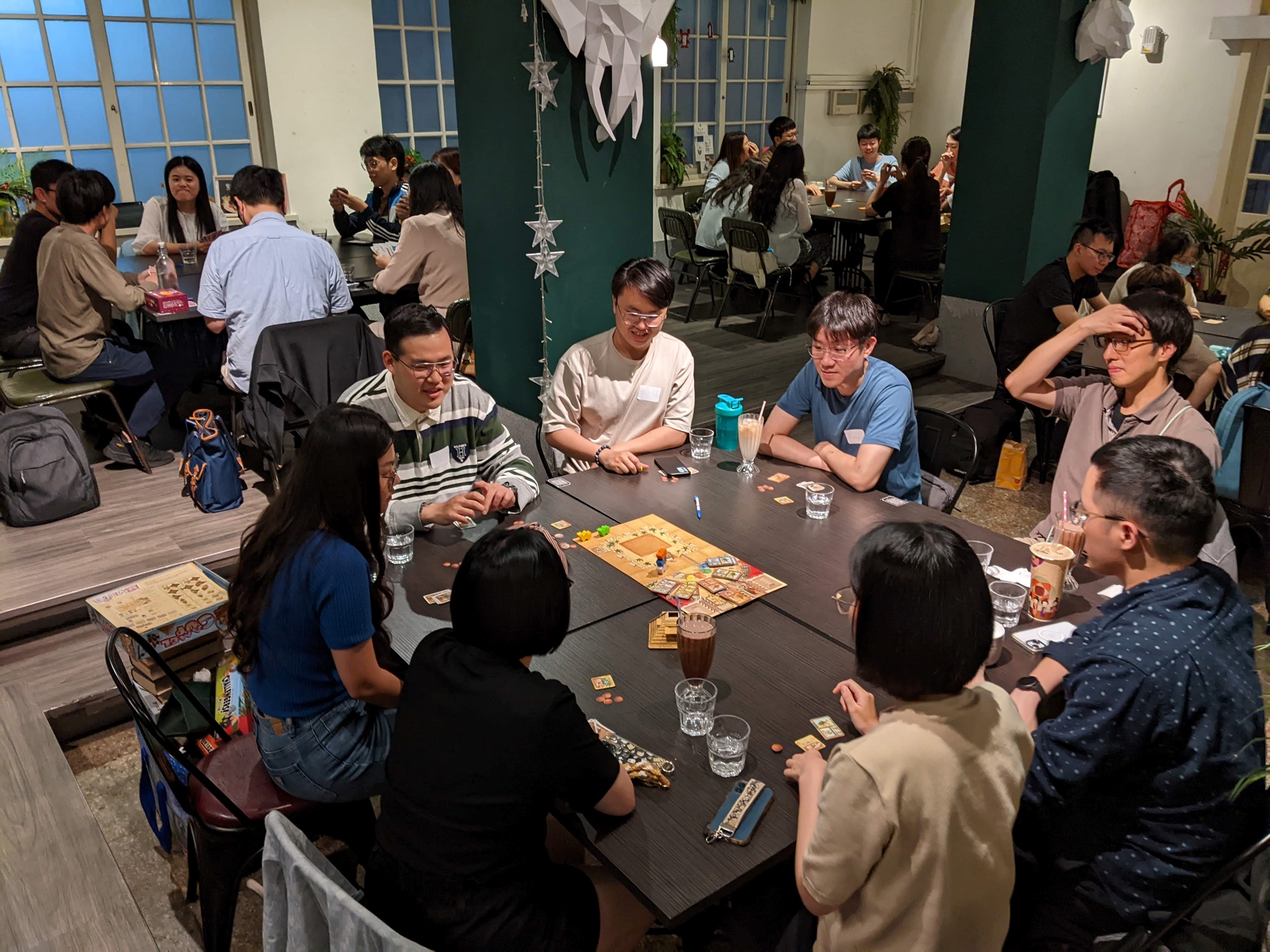 一般情況我們會讓先抵達的參加者往同一桌集中,一桌坐滿 6~8 人(含一位教學人員)就會先開始玩了,通常最早開始的那桌可以比最晚開始的那桌多玩 1~2 款遊戲!因此請大家盡量別遲到哦~