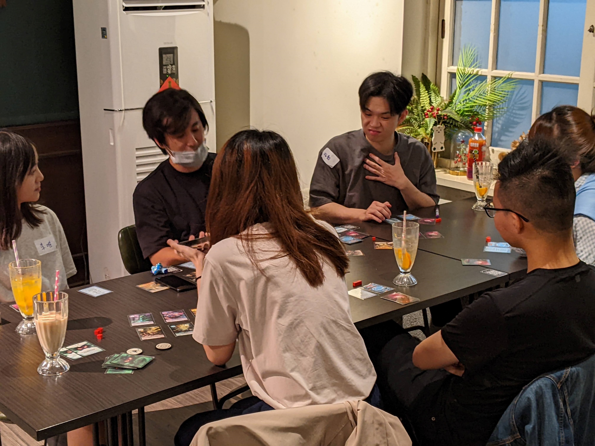 因為不是辦在桌遊店,因此我們這裡沒有說書人、阿瓦隆、狼人殺、風聲這幾款桌遊,但還是有其他陣營類型遊戲,會依照大家現場遊玩的狀況詢問大家是否想玩。