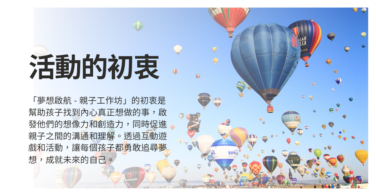 在這個充滿啟發與冒險的親子工作坊中,我們將帶領小朋友和家長一起展開一場尋找夢想的奇妙旅程!課程將包括以下內容: