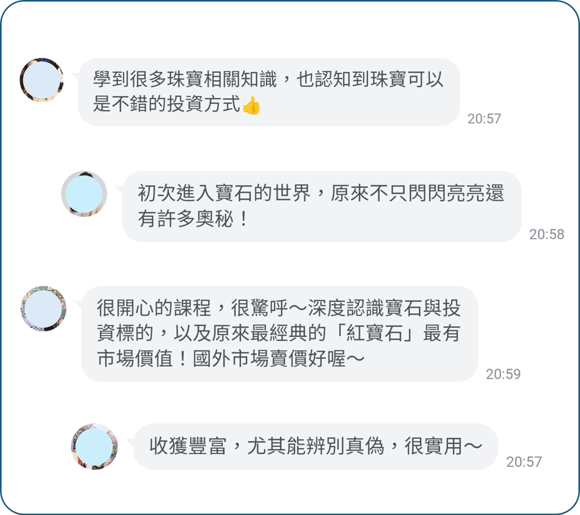 - 掌握不同彩色寶石的特色/價值分級/歷史文化~為珠寶投資做準備。