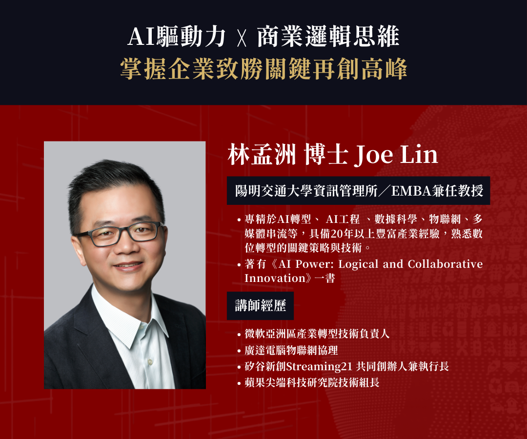講師Joe Lin將其多年的產業實踐、學術研究經驗結合最新AI趨勢,規劃出此課程。
