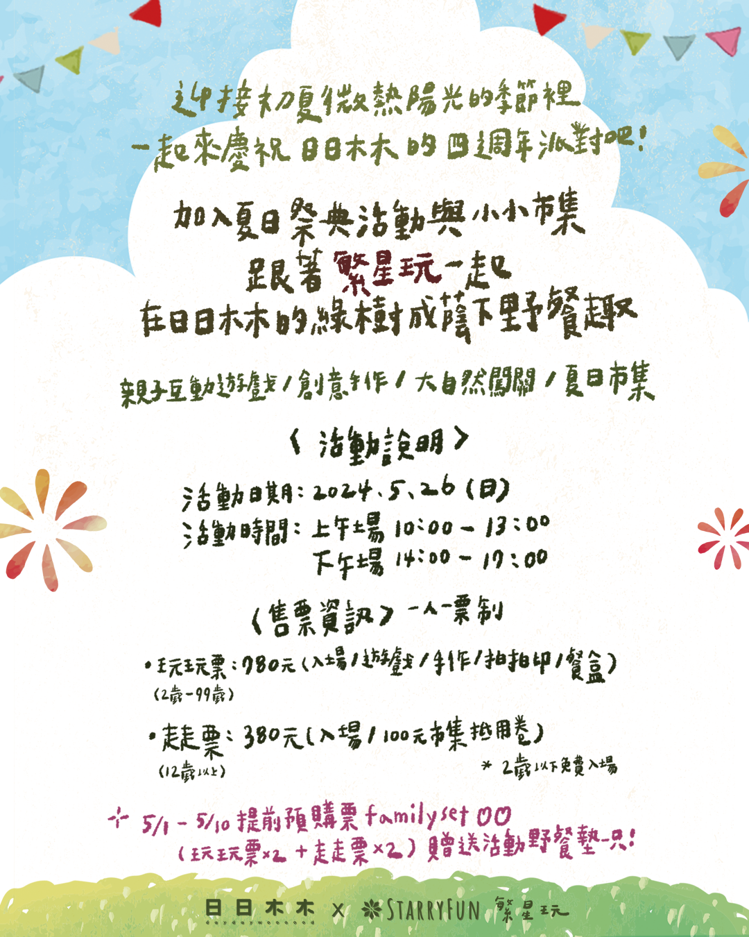 ✦早鳥預購票 Family set (玩玩票*2+走走票*2)