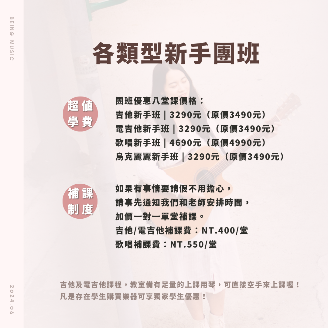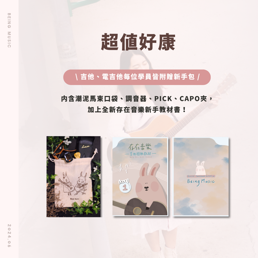 🎵 木吉他、電吉他團班皆附贈新手包(市價 700 元)、存在音樂新手教材書,