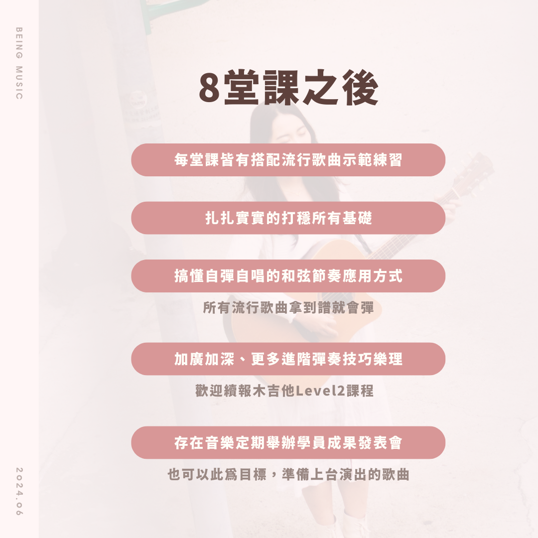 ✨8堂課目標:打穩基礎樂理節奏、自彈自唱、學會應用各式曲目