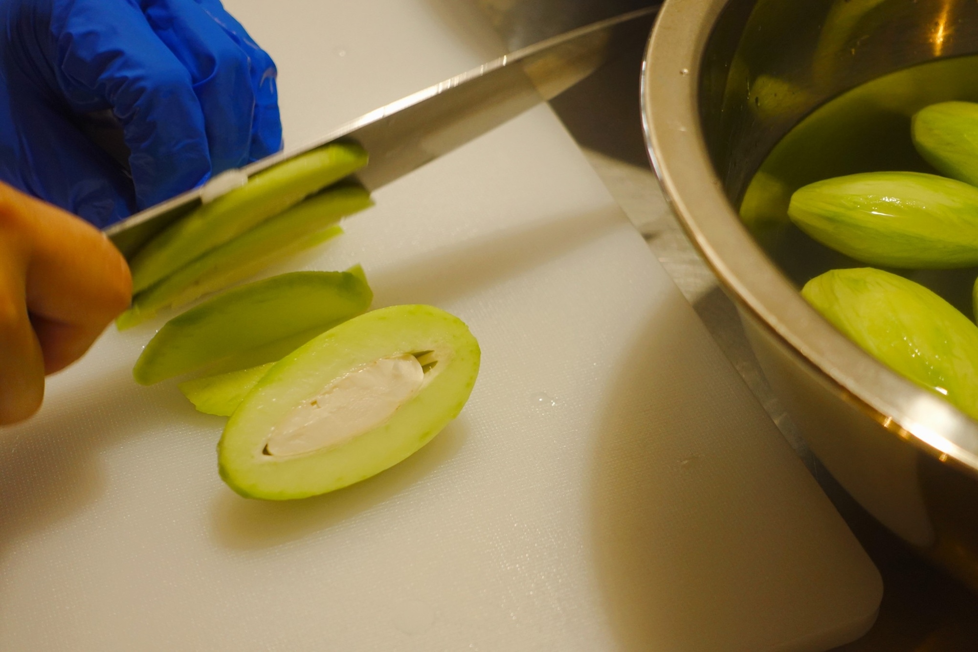 sᴛᴇᴘ4 試吃芒果青以及介紹可以回家做延伸食用的方法。
