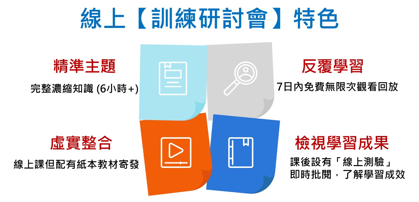 會預先寄送「紙本講義」(便利商店/郵寄方式),並搭配線上會議室進行課程,以方便進行筆記與吸收,達到最好的學習效果。