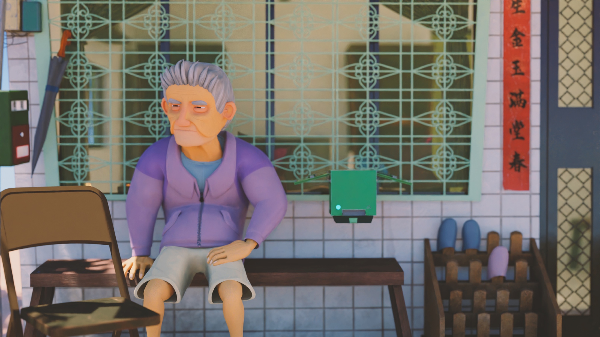 離城市很近卻相當高聳的山崖上住著獨居老人們,兩個主角過著藉由無人機送物資的日子,日復一日。直到某天兩人開始比較彼此的包裹多寡時,才意識到生活的空虛與寂寞。