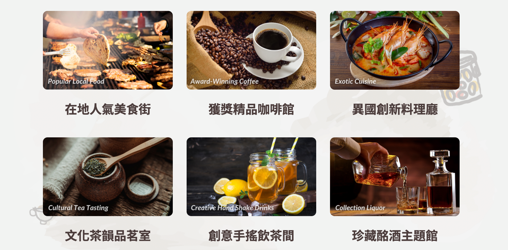 台南以美食聞名全球,從台灣美食發源地作為起點,網羅各地美食、茶文化、手搖飲、酒吧…等,將傳統與創新結合打造創新風味主題,藉由「食材藝術、創新飲品」帶給大家不同風貌體驗。