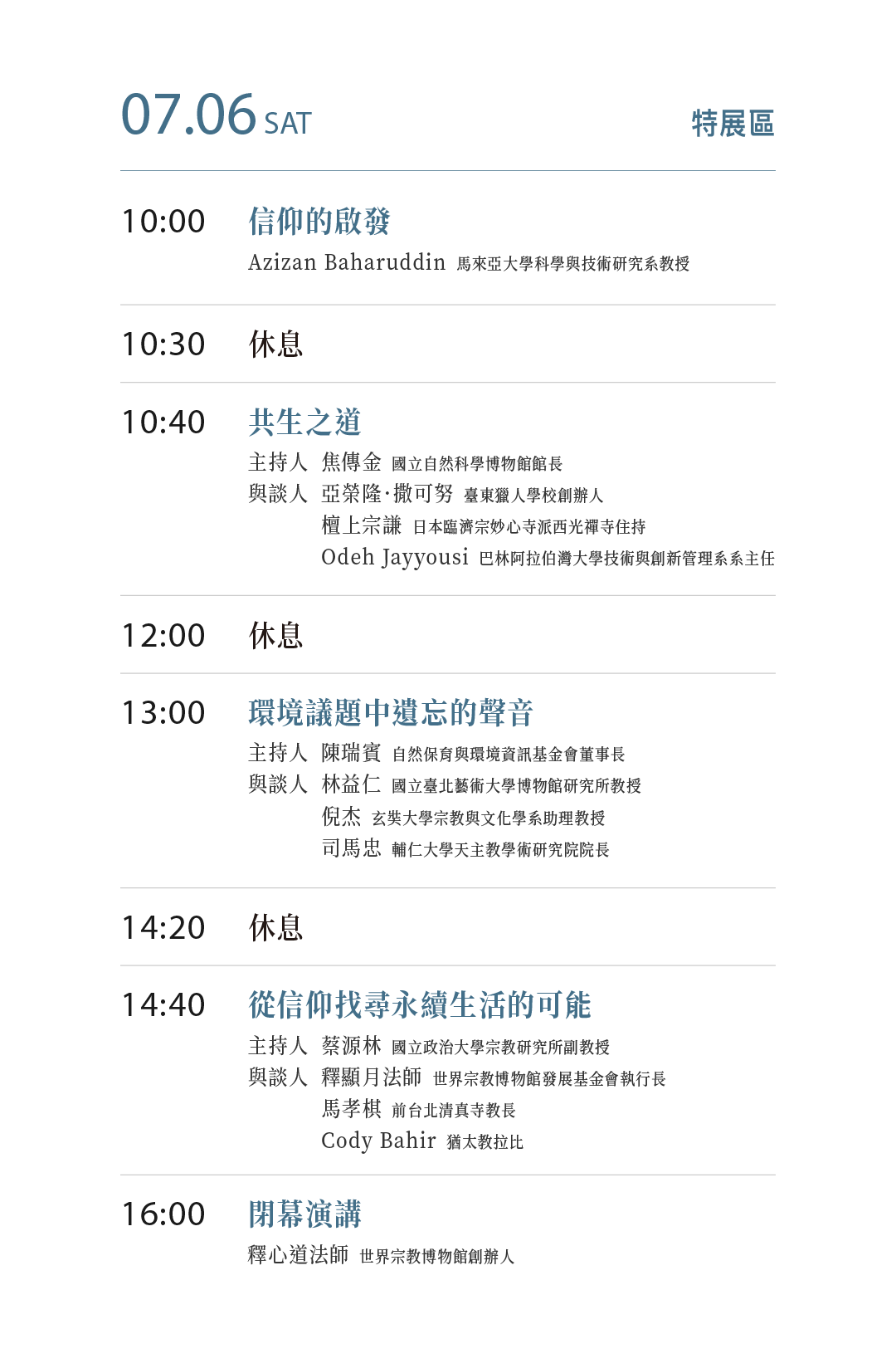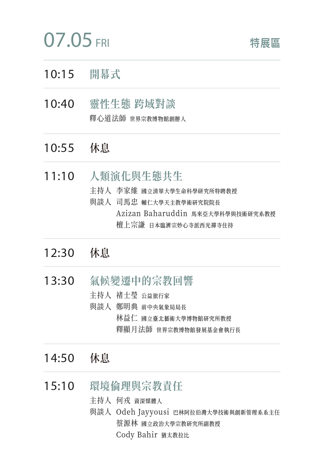 今年第18場的對談,宗博館將跨越宗教的限制,廣邀各界宗教代表,與科學家進行靈性與科學的對話。透過對談,一起探討生態永續到底有沒有解方。