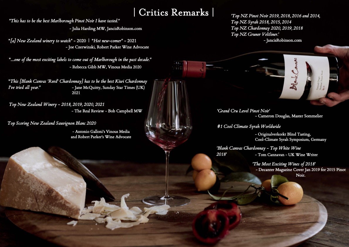 「成立於 2013 年,是馬爾堡最令人興奮的品牌之一。過去十年,我還沒有從 Blank Canvas 中找到一款我不會竭誠推薦的酒。」 -- 葡萄酒大師 Rebecca Gibb MW,Vinous 紐西蘭白酒 2024 年 4 月報告