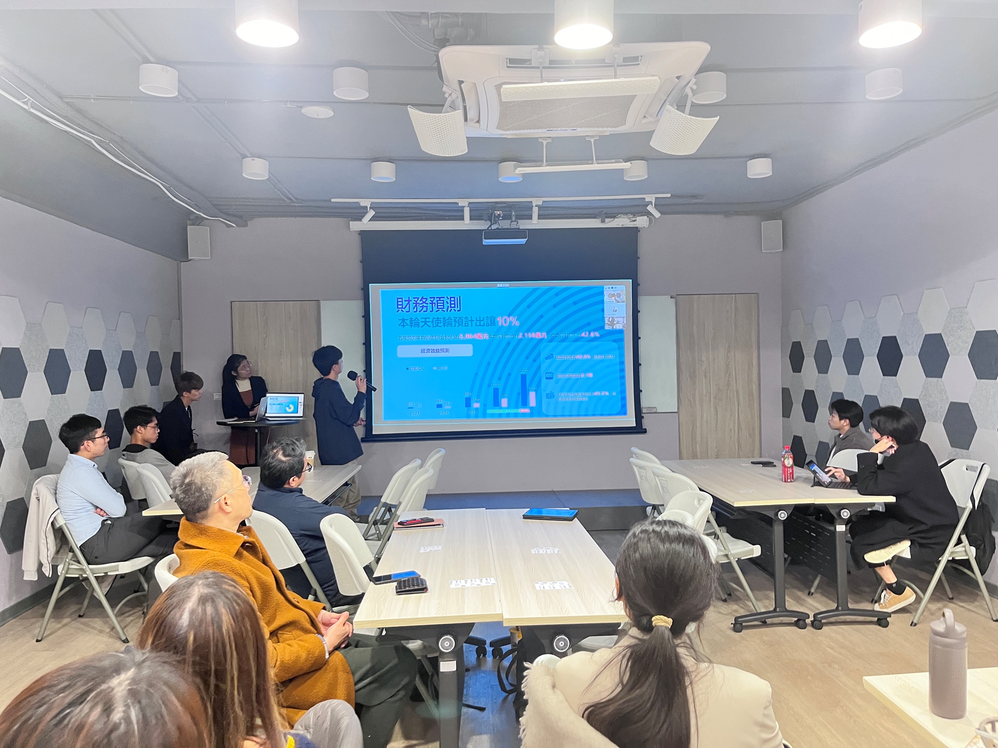 丞臻創投舉辦新創團隊的 Pre-Pitch,新創人有5分鐘的時間能夠描述產品/服務與企業展望,獲入選者將受邀請至下一輪的天使投資會進行正式Pitch爭取投資金額。