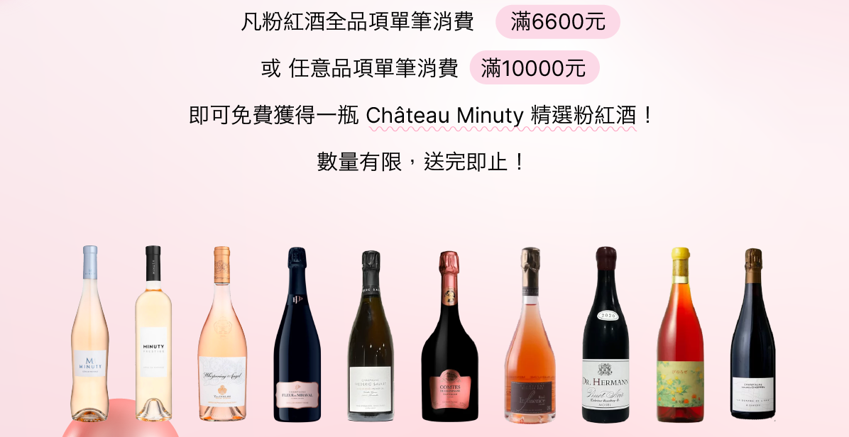 即可免費獲得一瓶Château Minuty精選粉紅酒!數量有限,送完即止!