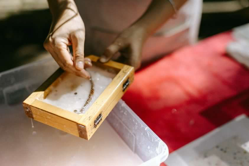 上課可以學到:基本造紙原理、回收素材處理、手抄紙創作,每一個人可以帶回一本八頁的明信片尺寸小書。