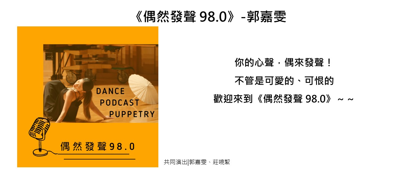 《偶然發聲 98.0》將藉以傳統戲曲中偶戲演出著重於主演口白,偶的一舉一動皆受到主演口白牽引的表演形式,發展全新原創小品。