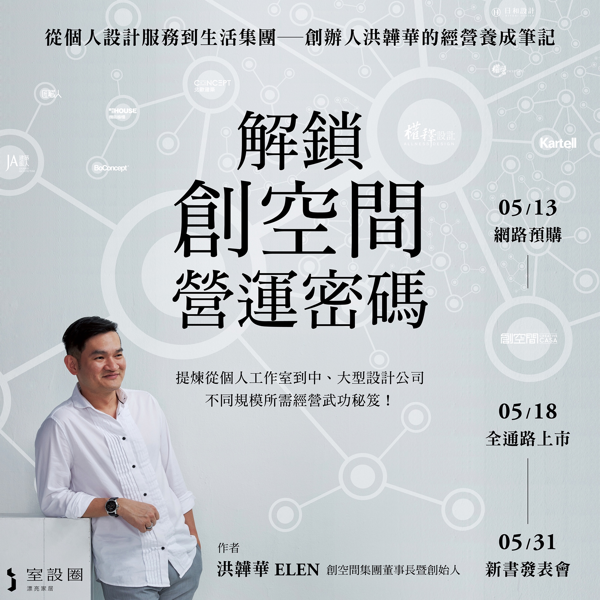 創空間集團創辦人洪韡華ELEN將創業的血汗、走過的彎路化為經營筆記,不藏私首次公開自已兩次創業失敗痛點,再從6人設計工作室起家,詳實筆記公司在不同時期,如何在成功與失敗交錯中,從只是做住宅設計跨領域成為全版圖的生活集團,其中的點滴感悟與經驗分享。