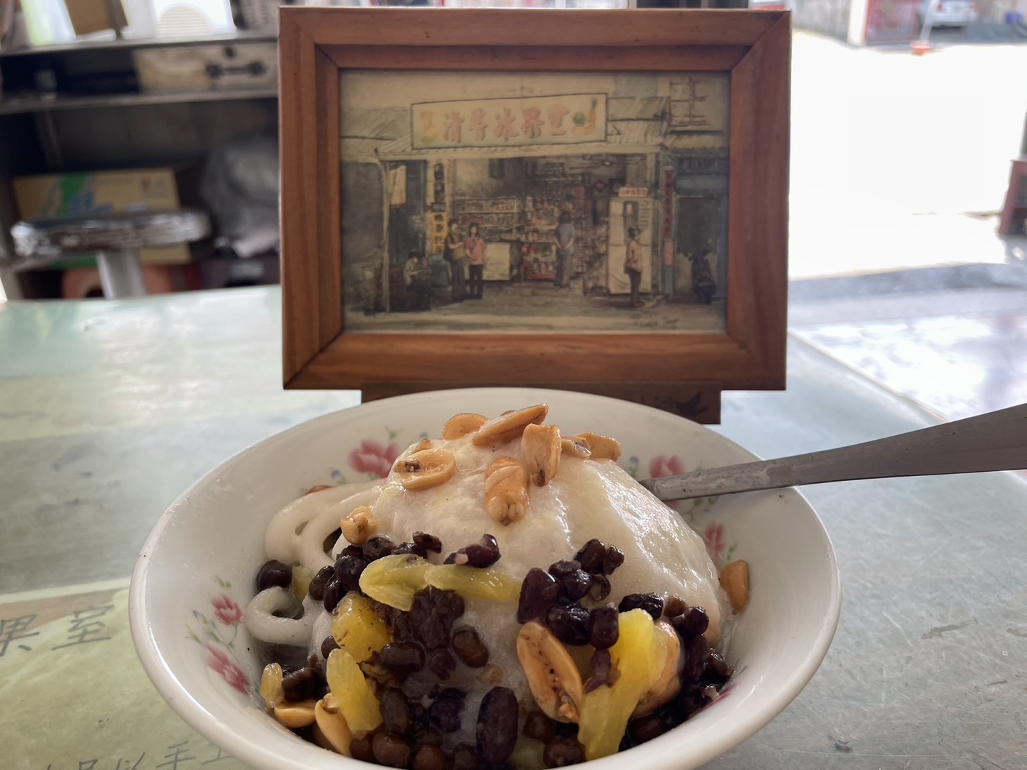 「清香冰果室」在地經營已50年,每天自己煮水製作無毒無菌的冰塊,加上用自己熬煮的蔗糖,堅持古早味做法,創造傳統美味。