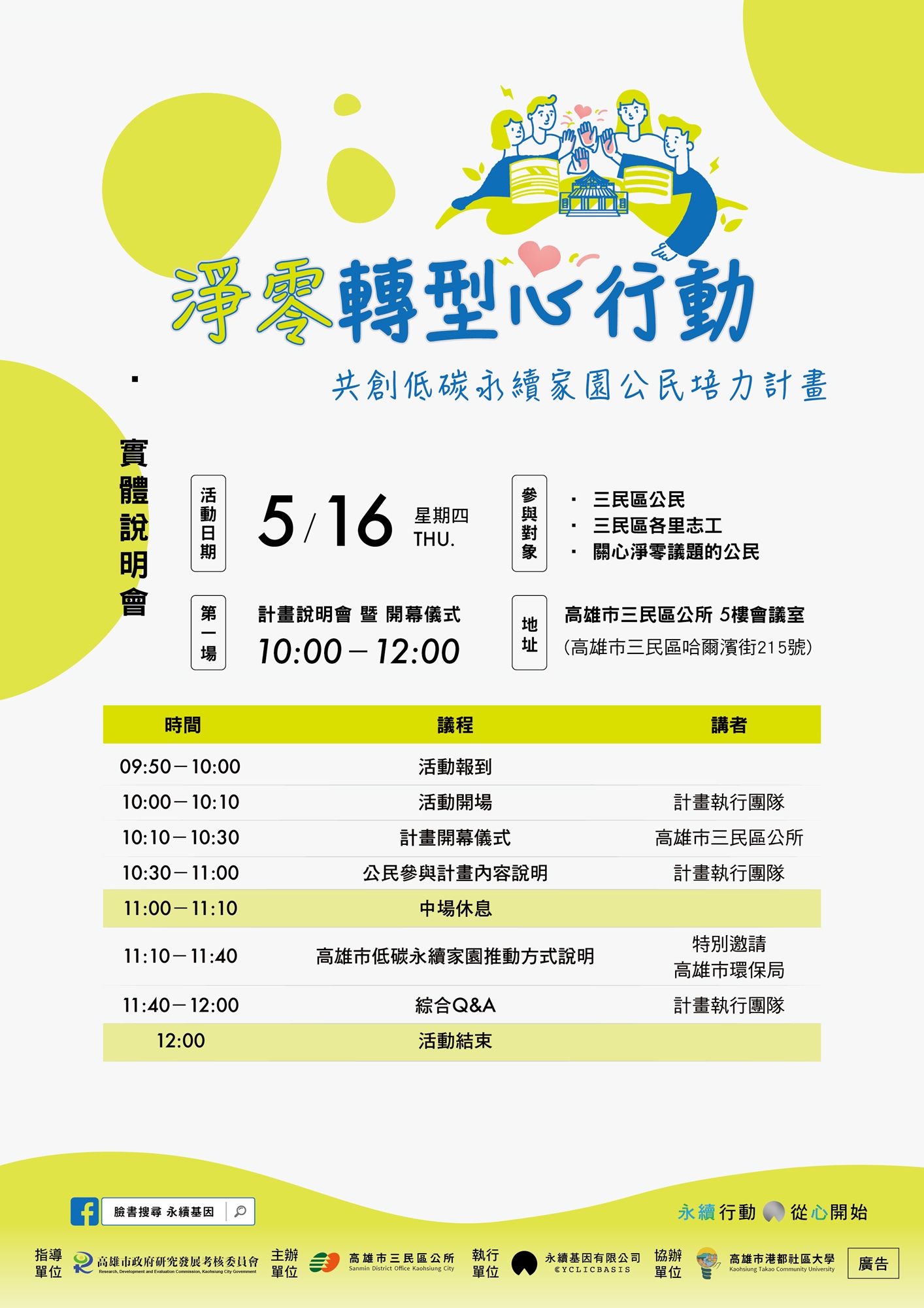 如果你也關心地球的健康、如果你也願意為全球暖化做點什麼,那麽今年初夏由高雄市三民區公所主辦的 🌱淨零轉型心行動|共創低碳永續家園公民培力計畫🌱 就是你不能錯過的第一步!