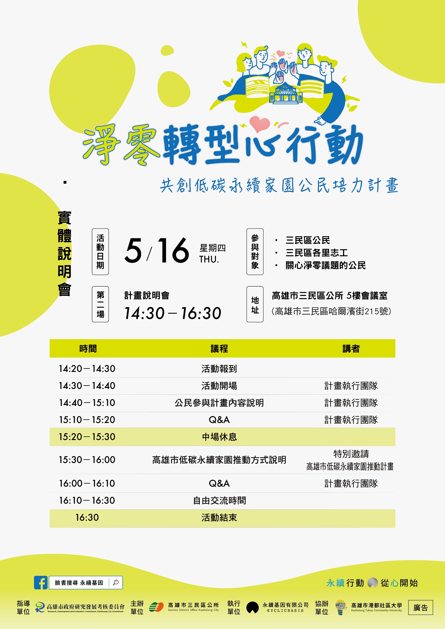 如果你也關心地球的健康、如果你也願意為全球暖化做點什麼,那麽今年初夏由高雄市三民區公所主辦的 🌱淨零轉型心行動|共創低碳永續家園公民培力計畫🌱 就是你不能錯過的第一步!