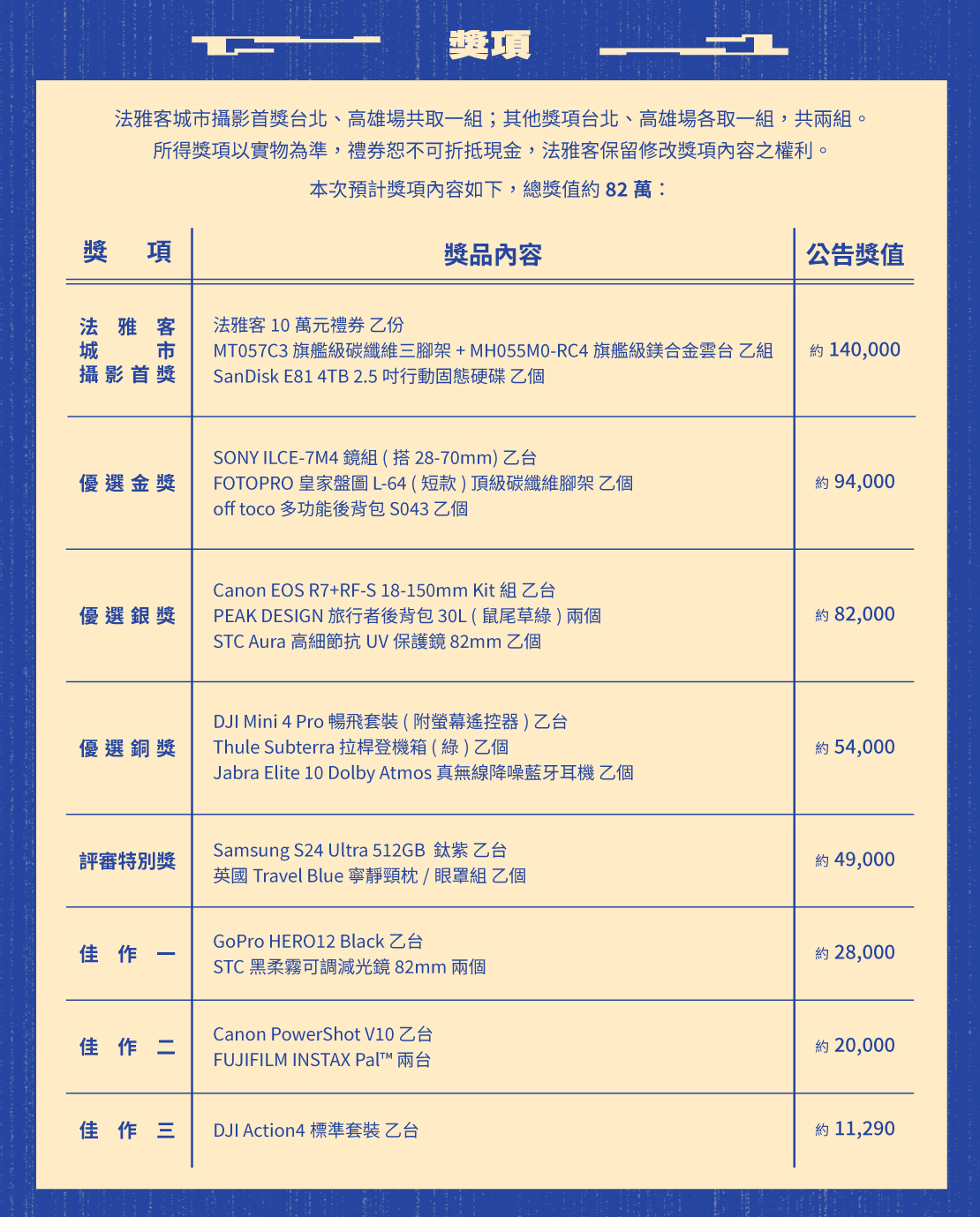 ▲法雅客城市攝影首獎台北、高雄場共取一組;其他獎項台北、高雄場各取一組,共兩組。