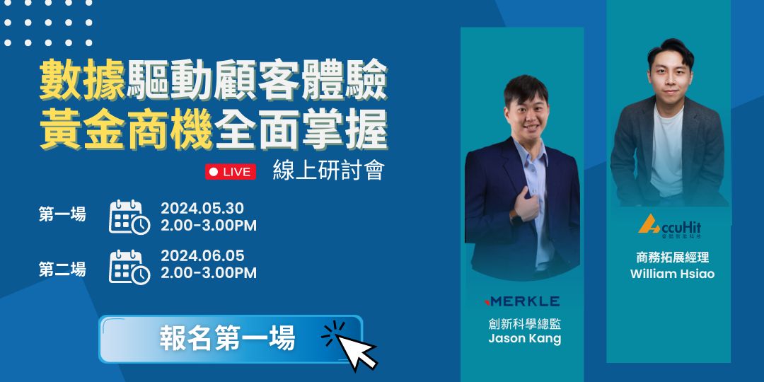 本次研討會將分享如何透過數據分析與應用,提升顧客體驗並挖掘潛在商機。愛酷智能科技特邀電通集團旗下數據商務顧問品牌「美庫爾Merkle」,以MarTech結合數據分析的視角,找出行銷致勝點。