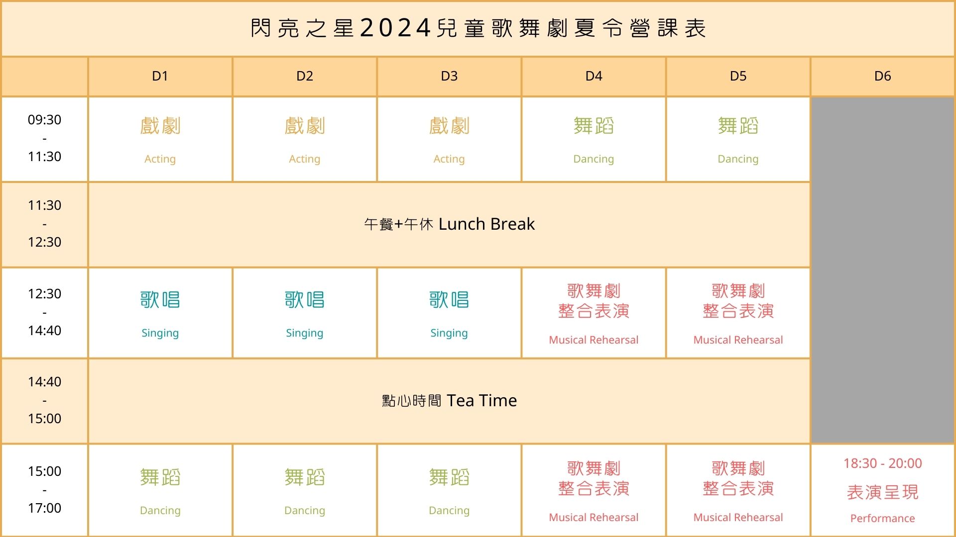 參考課表|涵蓋完整舞蹈、戲劇、歌唱訓練、排練課程、Showcase呈現