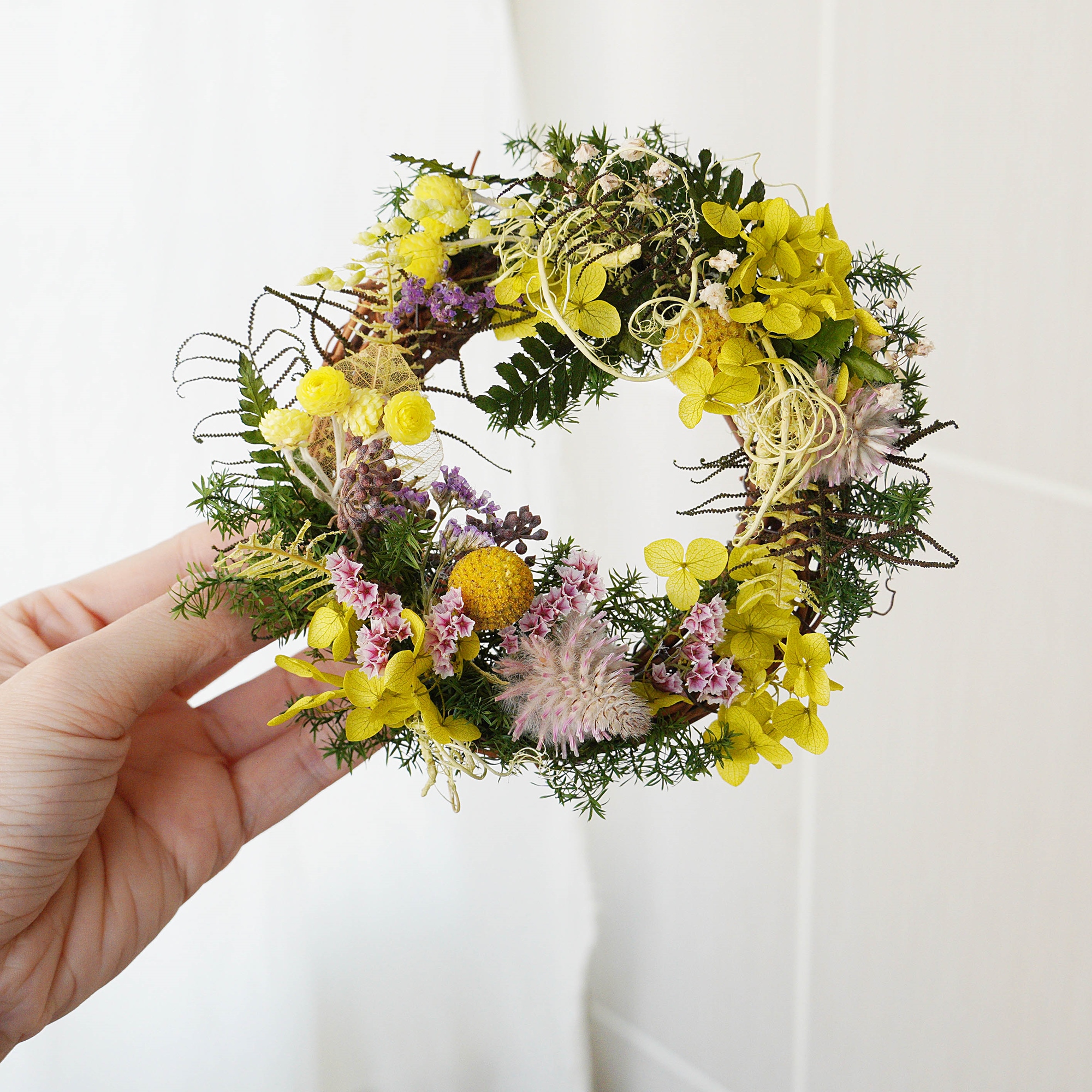 ◆ 完成作品為 一個小花圈;花圈尺寸直徑約12cm;完成作品約12~14cm 。