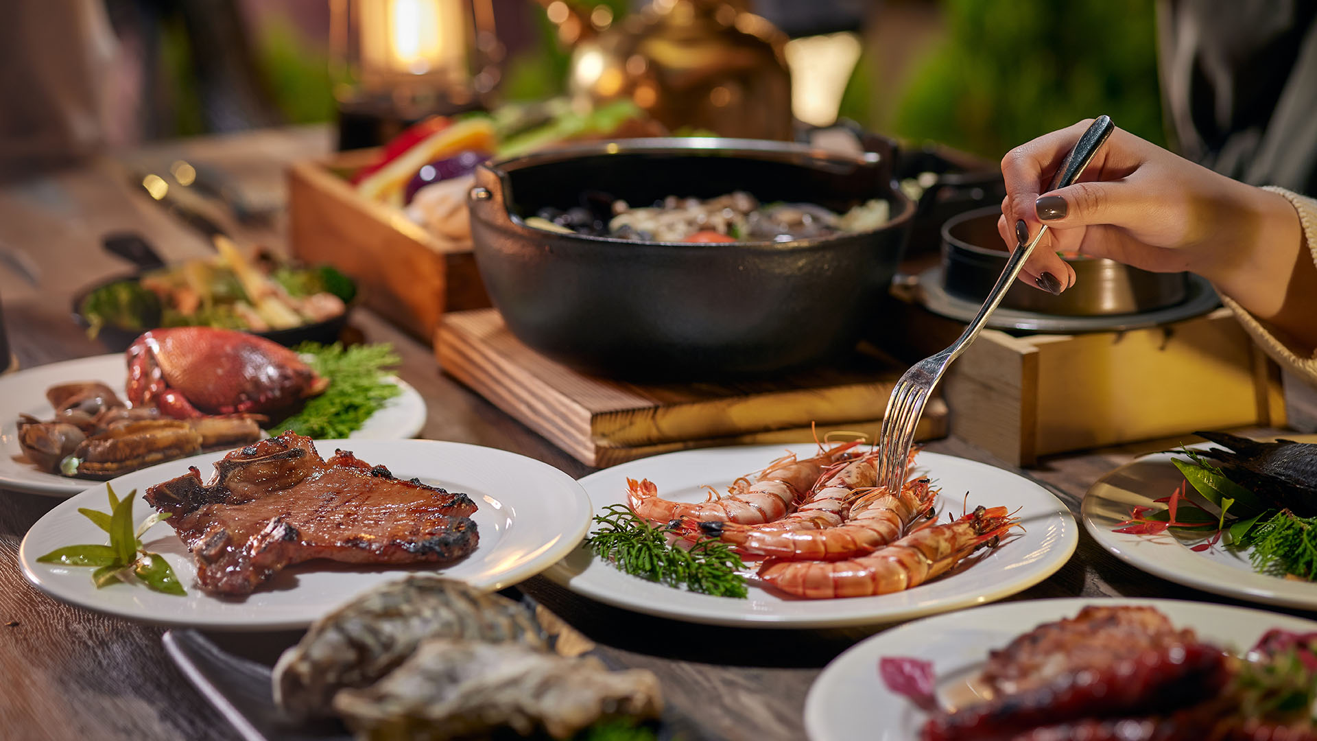 一泊三食的奢華饗宴,包含下午茶、晚餐、早餐,精選南投在地食材入菜,隨著時節變換菜單,確保每一道佳餚都能呈現季節的風味與地方的特色,每一口都是獨一無二的味覺饗宴,讓您在享受自然美景的同時,品嚐到南投當地的美味。