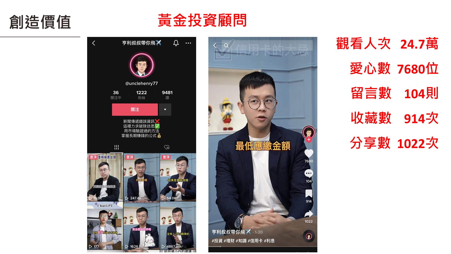 例如在短影音平台上,粉絲數破十萬的職人帳號越來越多,