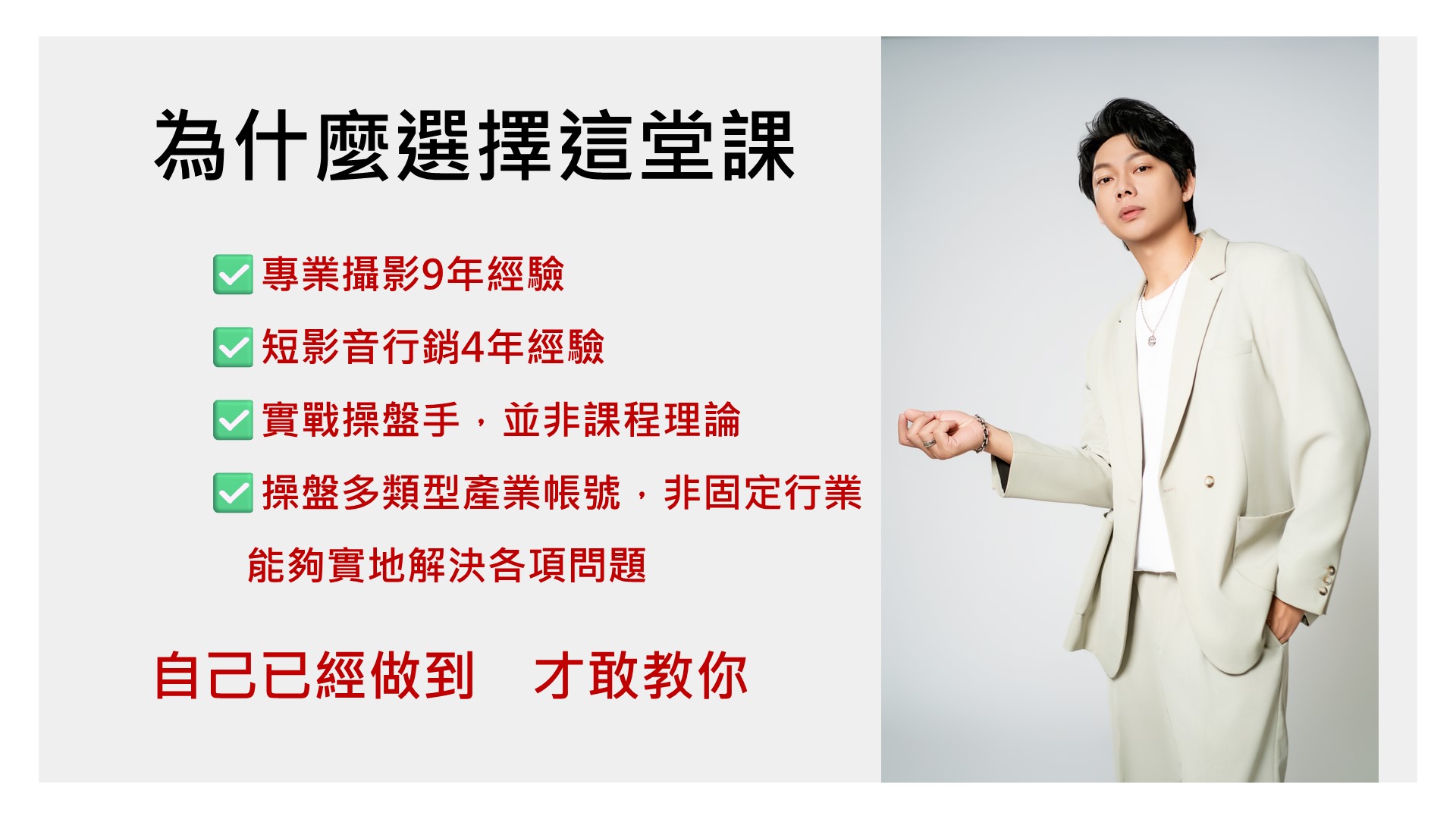 6 | 拍攝教學 | 學習短影音拍攝的基礎技巧,通過鏡頭運用和光線控制,製作具專業感的高質量短影音,吸引更多受眾。 |