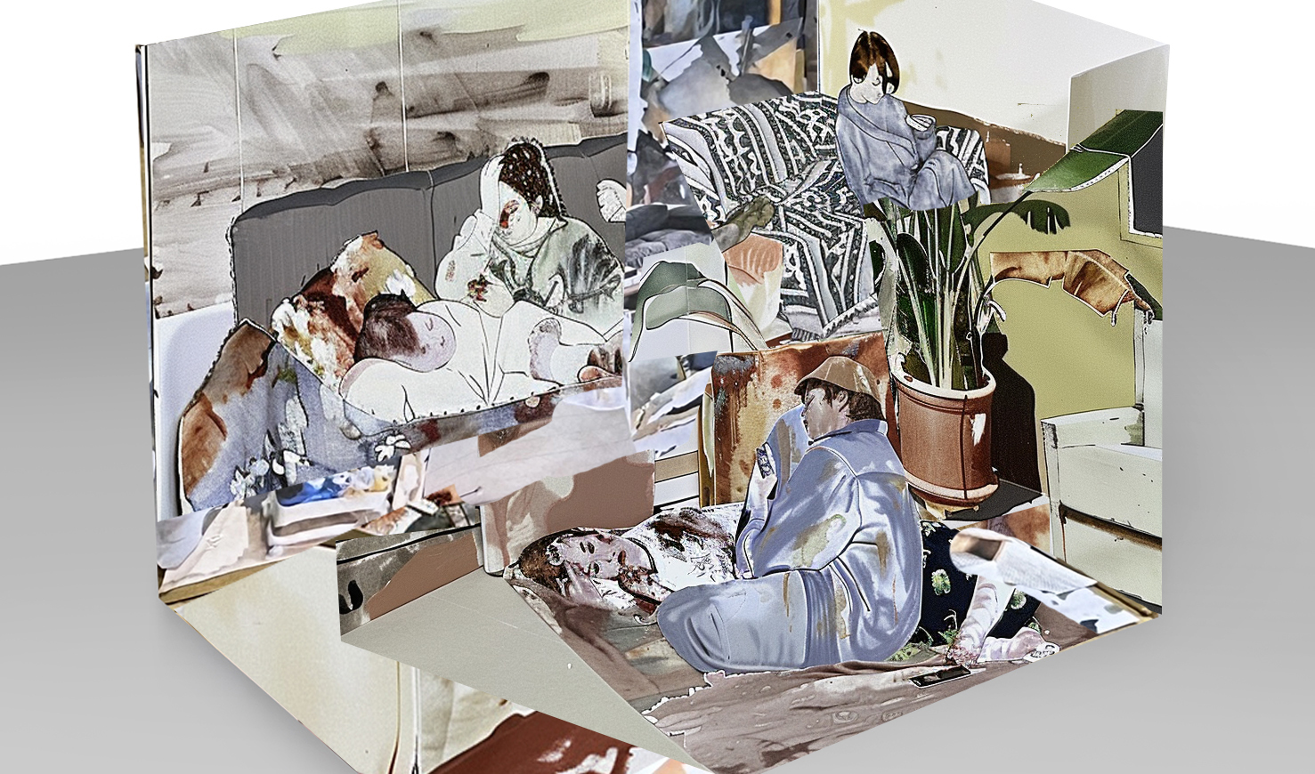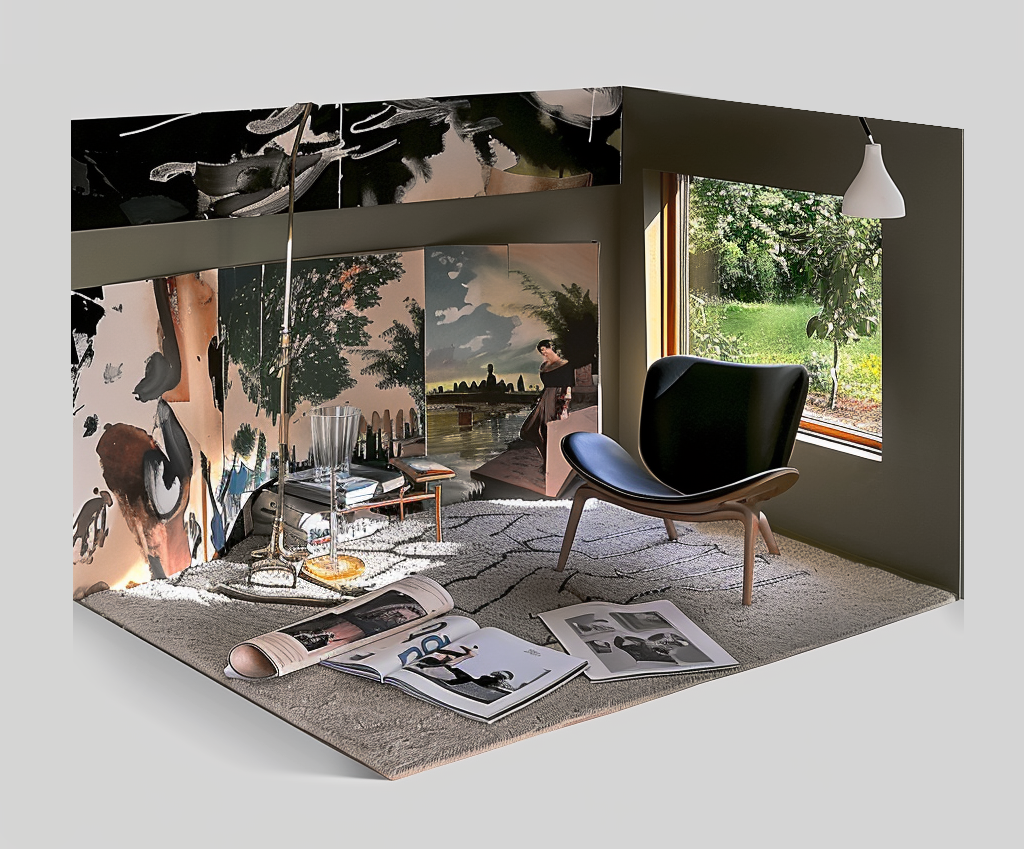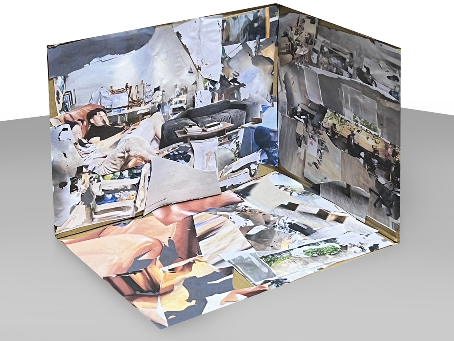 在第二階段,先用模型卡紙製作一個小房間,再使用挑選的元素進行拼貼。這個模型房間代表學員自身感興趣的人事物、願望,或自我介紹。房間的內外牆面,請分別以感性與理性兩種不同的思維,製作出截然不同的視覺調性。