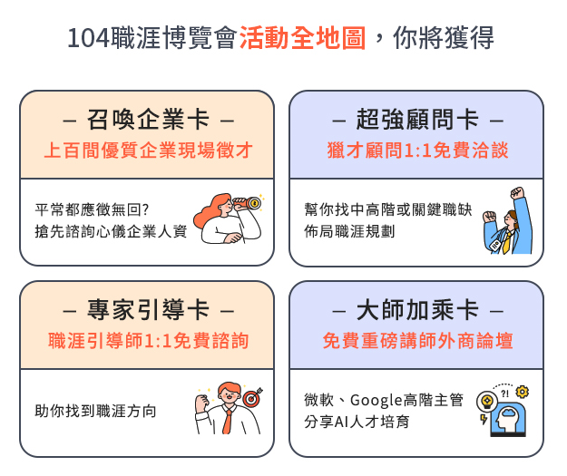 現在就報名【快來成為揪團王!邀請朋友參加『104人力銀行 2024職涯博覽會』大獎等你拿🔥】