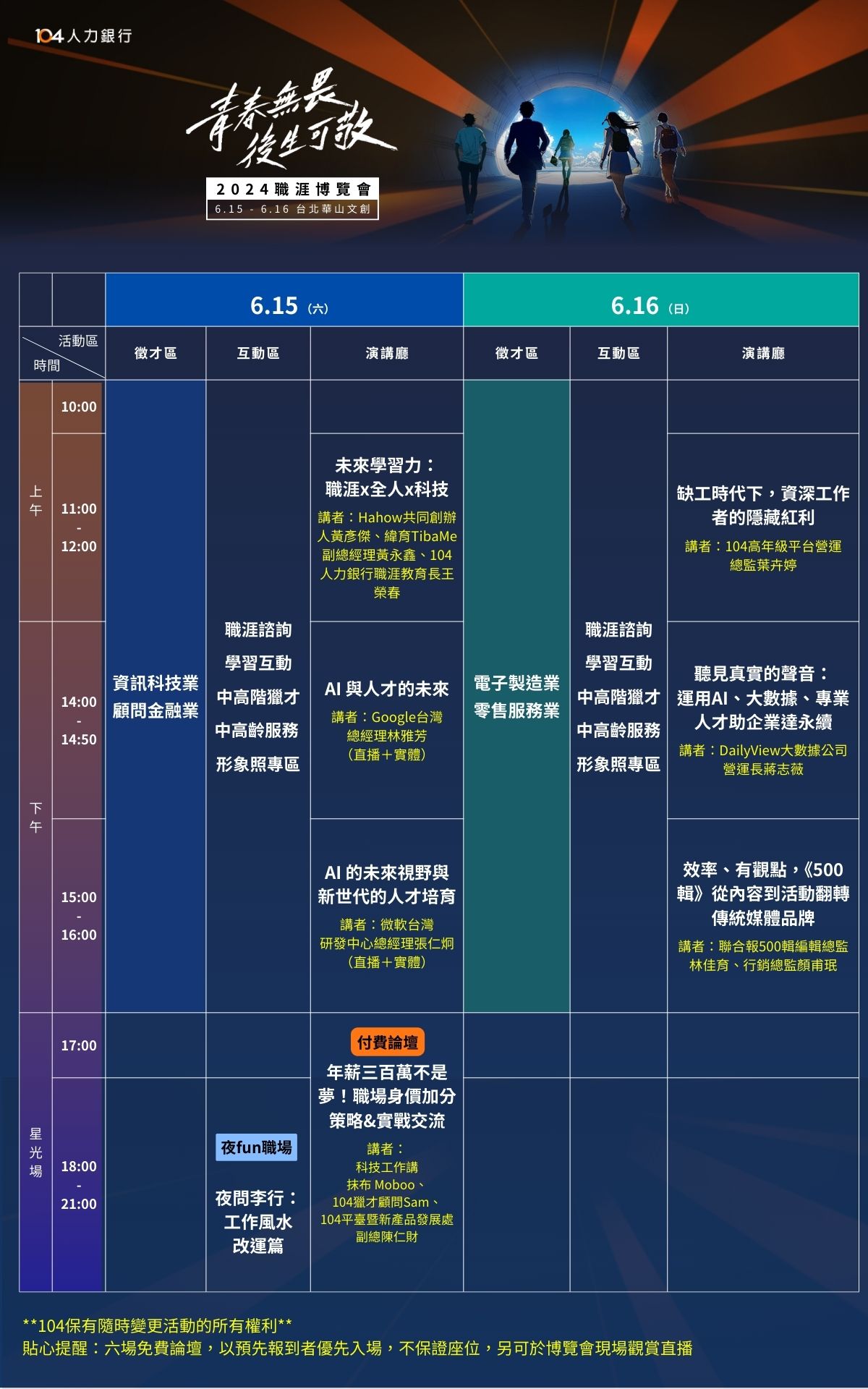 還有中高階獵才、職涯諮詢、趨勢論壇、中高齡多元求職服務、夜fun職場等系列活動