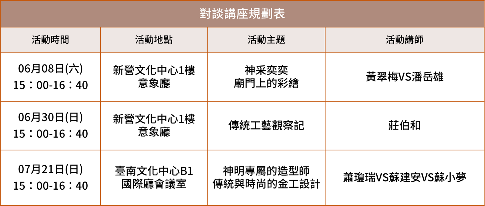 - 07月21日(日)臺南文化中心—神明專屬的造型師-傳統與時尚的金工設計