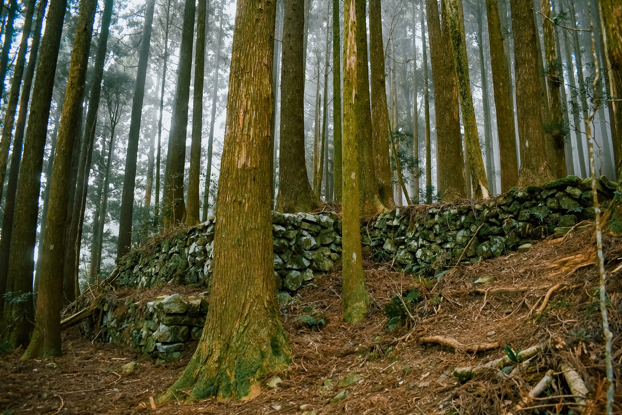 沿路的廢棄的日據建築遺址,與森林行成錯落特別的景致,述說著歲月的故事