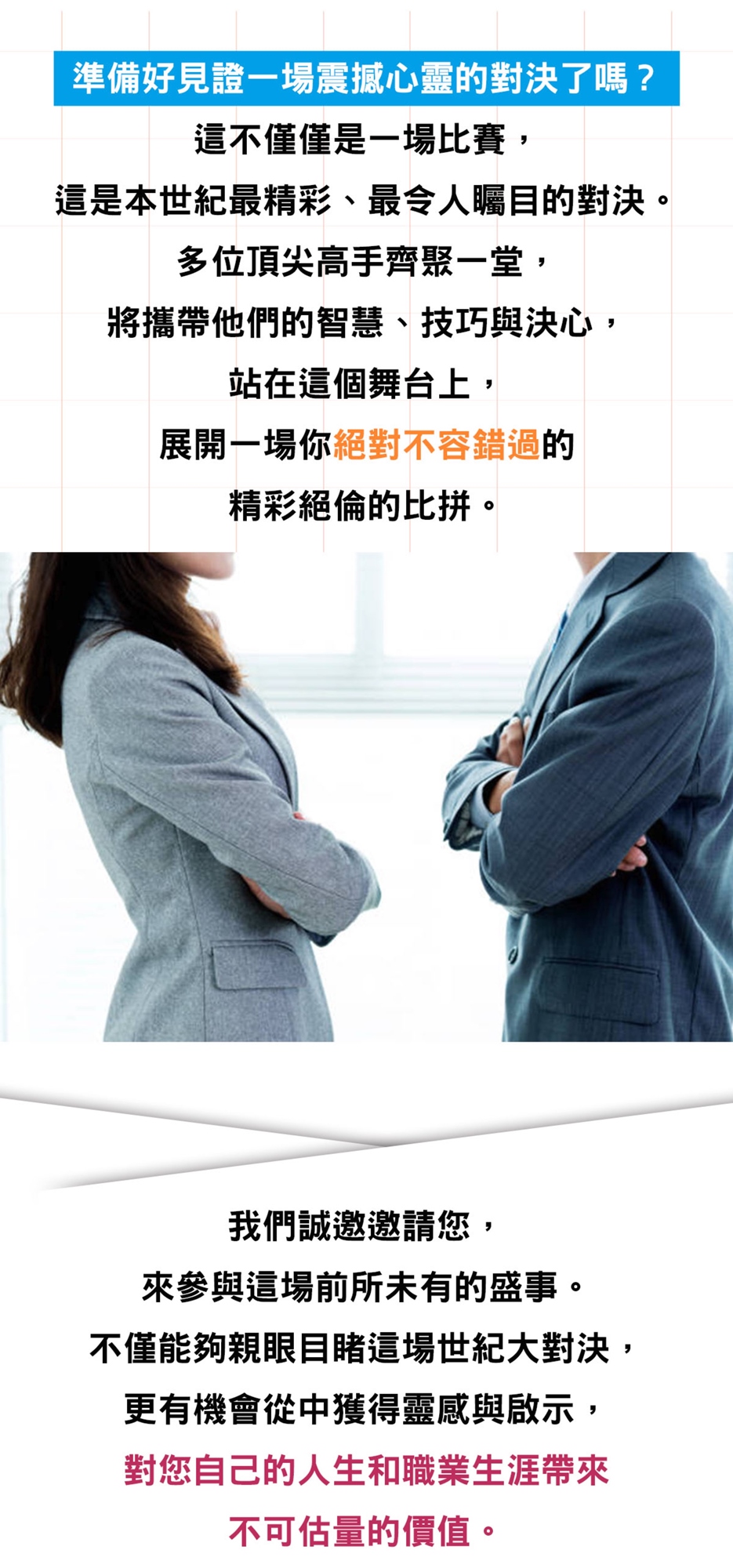 🔥🌐 此外,還有更多業界精英將加入這場對決,包括經驗豐富、智慧淵博的談判老將以及充滿熱情、創新思維的新星。他們將分享他們獨到的見解和策略,為您帶來前所未有的啟發和驚喜!💼🤝