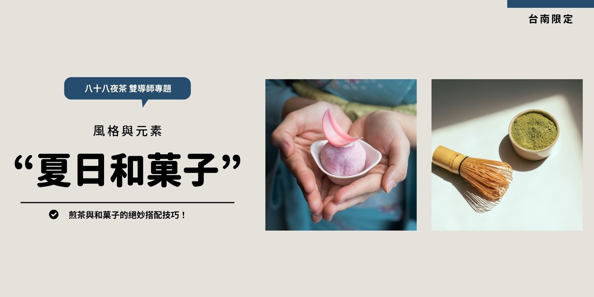 我們誠摯地邀請您參加在台南舉辦的夏季茶會,品嚐綠意盎然的茶,以及和菓子師傅現場製作的多款春、夏季限定和菓子。