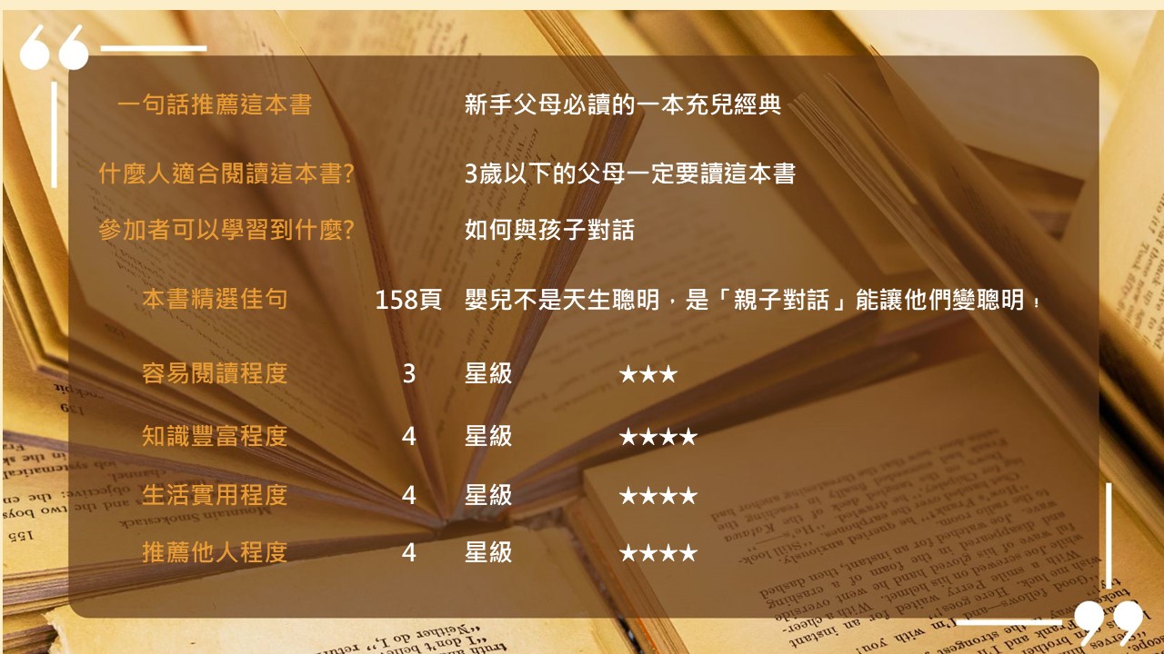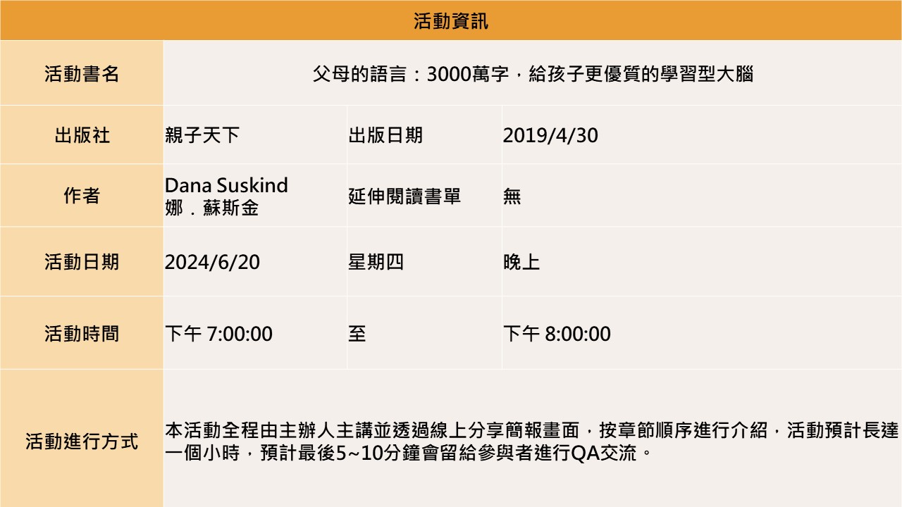 【BookBook預約線上讀書會】父母的語言:3000萬字,給孩子更優質的學習型大腦