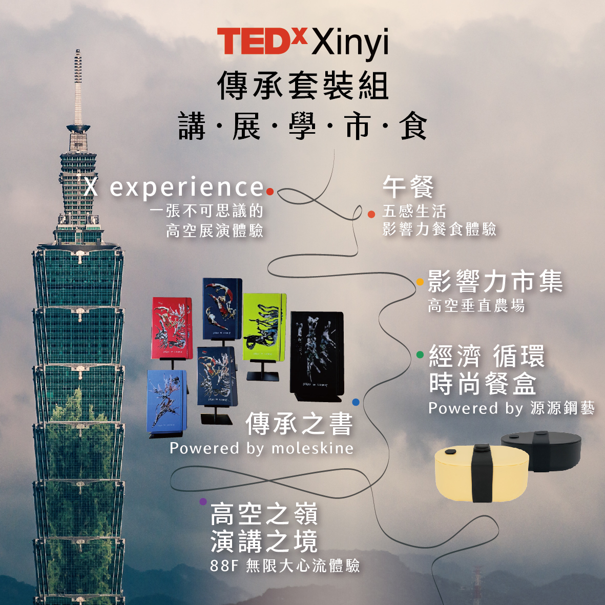 X 這是一個嶄新面貌劃時代的時刻,呼籲各界人士一起支持由TEDxXinyi主辦的 「高空論壇年度大會」在台灣地標景點台北101 88樓(space88)再次傳承疫情最艱鉅時的「樂觀趨勢家」大會— 海納百川,TEDxXinyi傳承的力量兼具「展/學/市/論」創新性人物述寫結合視覺說故事策展,以「如何」獨具匠心打造出人與人社群間的關懷,相互碰撞,激盪,為這世界一場淋漓盡致的傳奇呼喚。