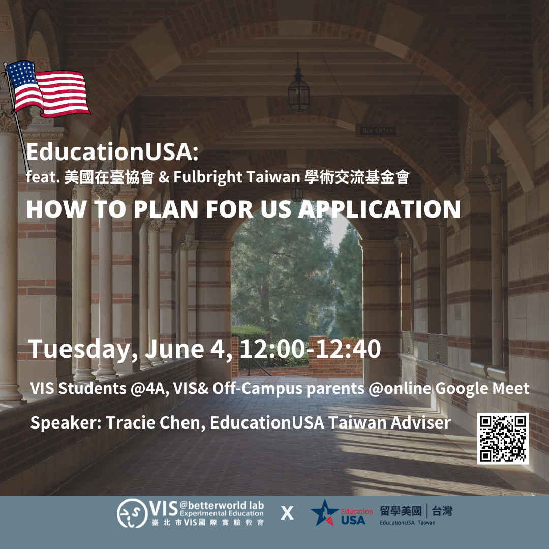 EducationUSA隸屬美國國務院,提供關於所有最新且正確地的美國大學資訊,歡迎校內外家長與學生參加此講座!