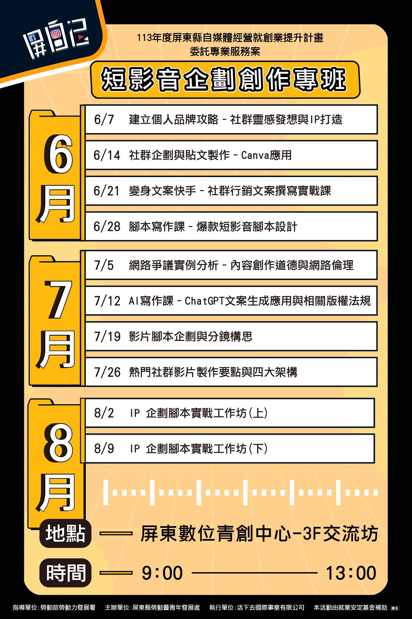 『113年度屏東縣自媒體經營就創業提升計畫』