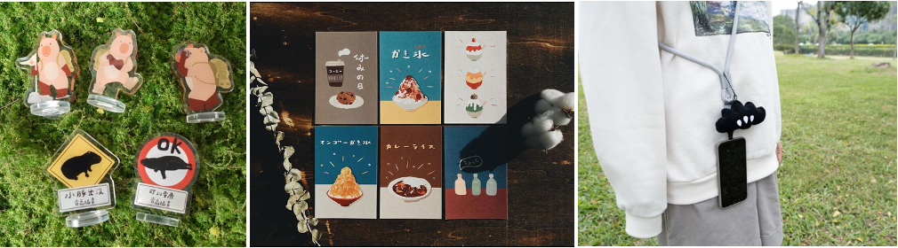 擅長運用手繪筆觸的【食料品制作所しょくりょうひんセイサクショ】透過甜點的插畫創作,將帶大家體驗一場創作的饗宴,讓甜點們不僅是味蕾上的感受,更是一場視覺藝術旅行!市集現場帶來了超多不同種類的甜點插畫文創商品,希望大家都能在這裡找到喜歡的甜點,帶回家細細品嚐!