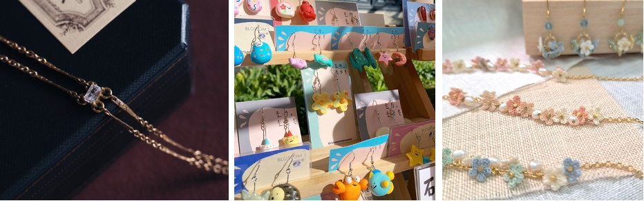 【壹月。壹參零】以各式可愛的元素製作出造型感十足的手工飾品,最熱門的⽯塑⼟耳環,每一副都是獨一無二的,透過繁瑣的製作工序,傳遞給大家充滿童真又溫暖的感受!就算穿搭簡單,搭配起來也絕對是今日亮點,快來為穿搭增添的繽紛色彩吧!