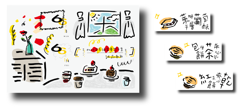 凡於市集完成打卡標記【食料品制作所】以及加入expo LINE官方帳號好友,即贈【食料品制作所】限量甜點插畫明信片+貼紙 乙組!