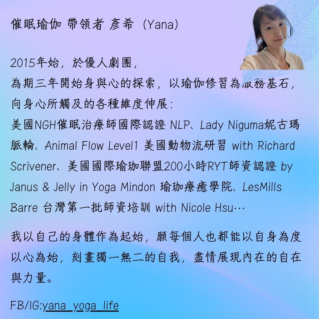 *因瑜伽場地空間有限,12人額滿,已匯款順序為主。