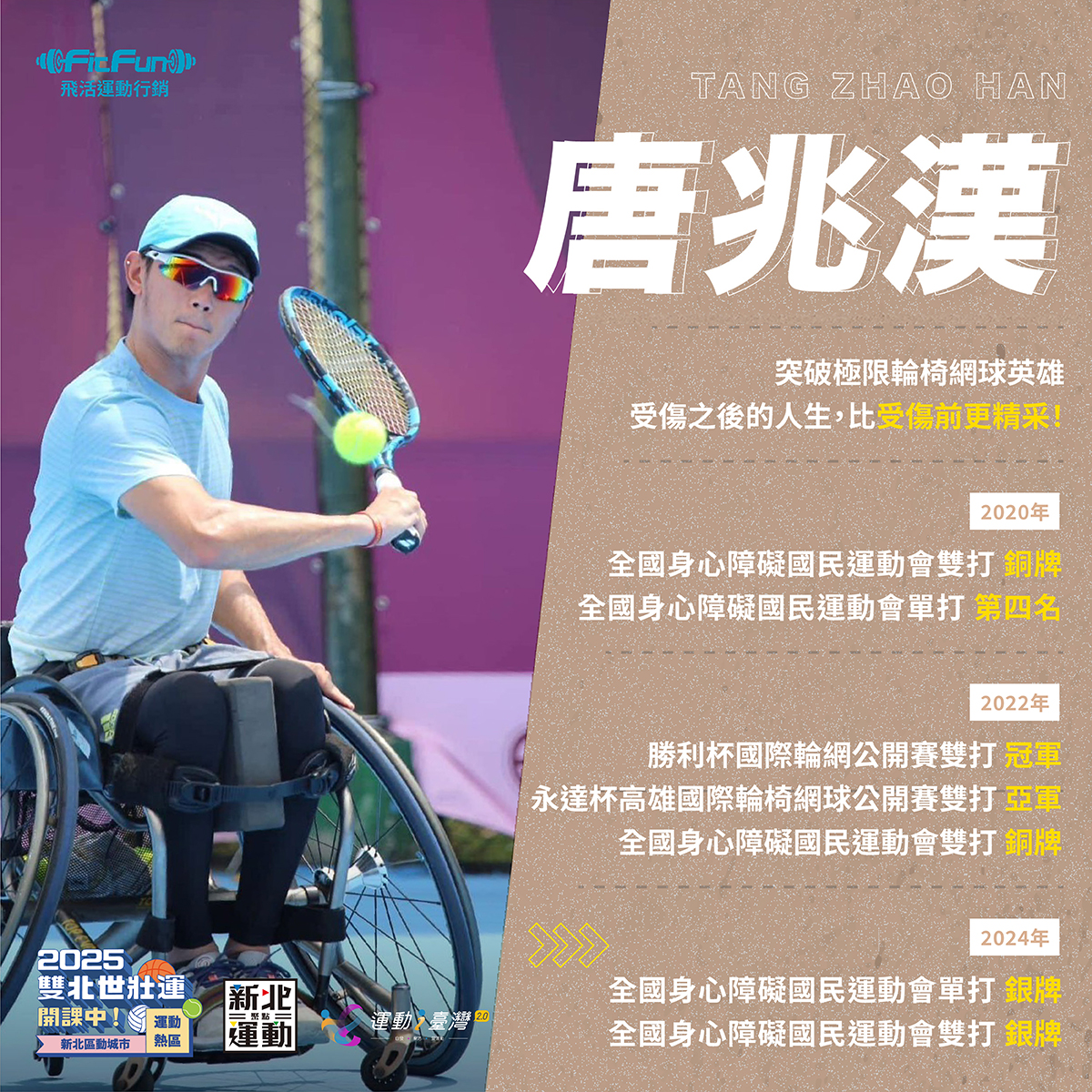 金牌選手限定課,歡迎喜歡網球的大小朋友,想了解輪椅網球的內容,一起來聽聽唐兆漢選手的甘苦談!