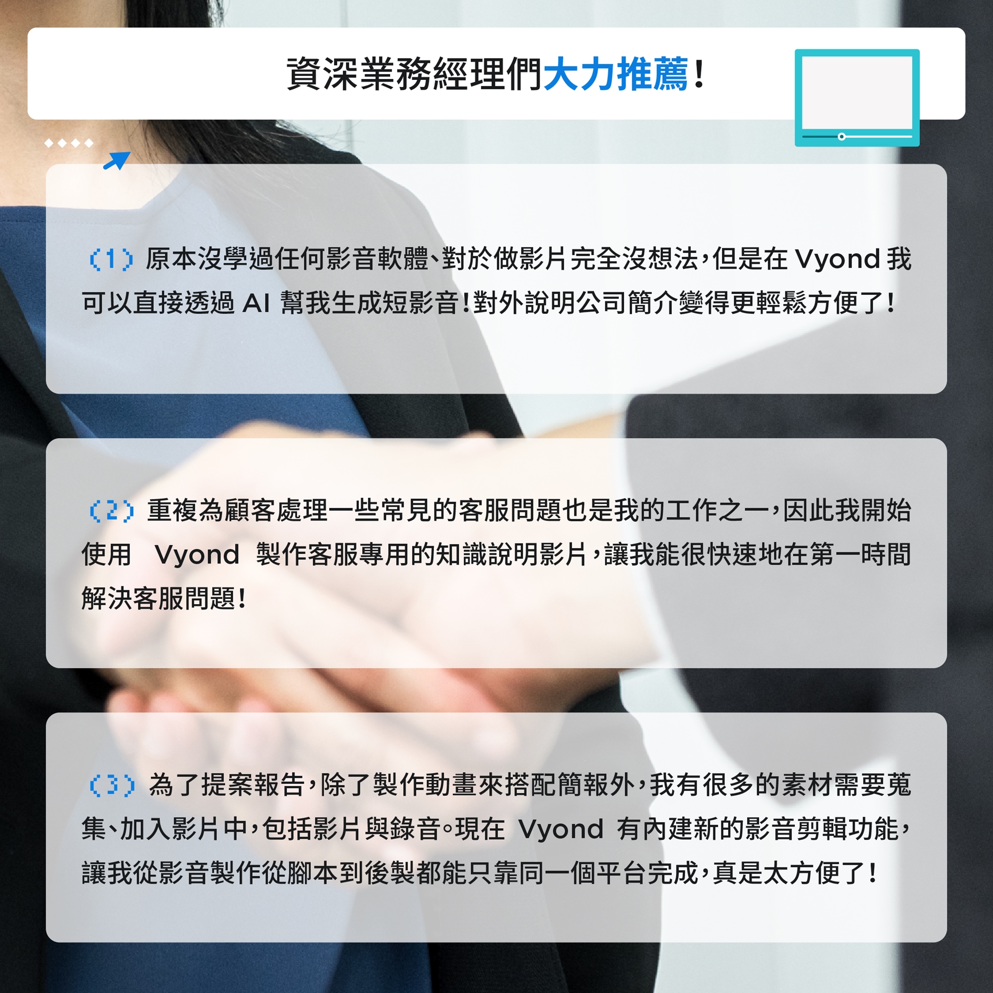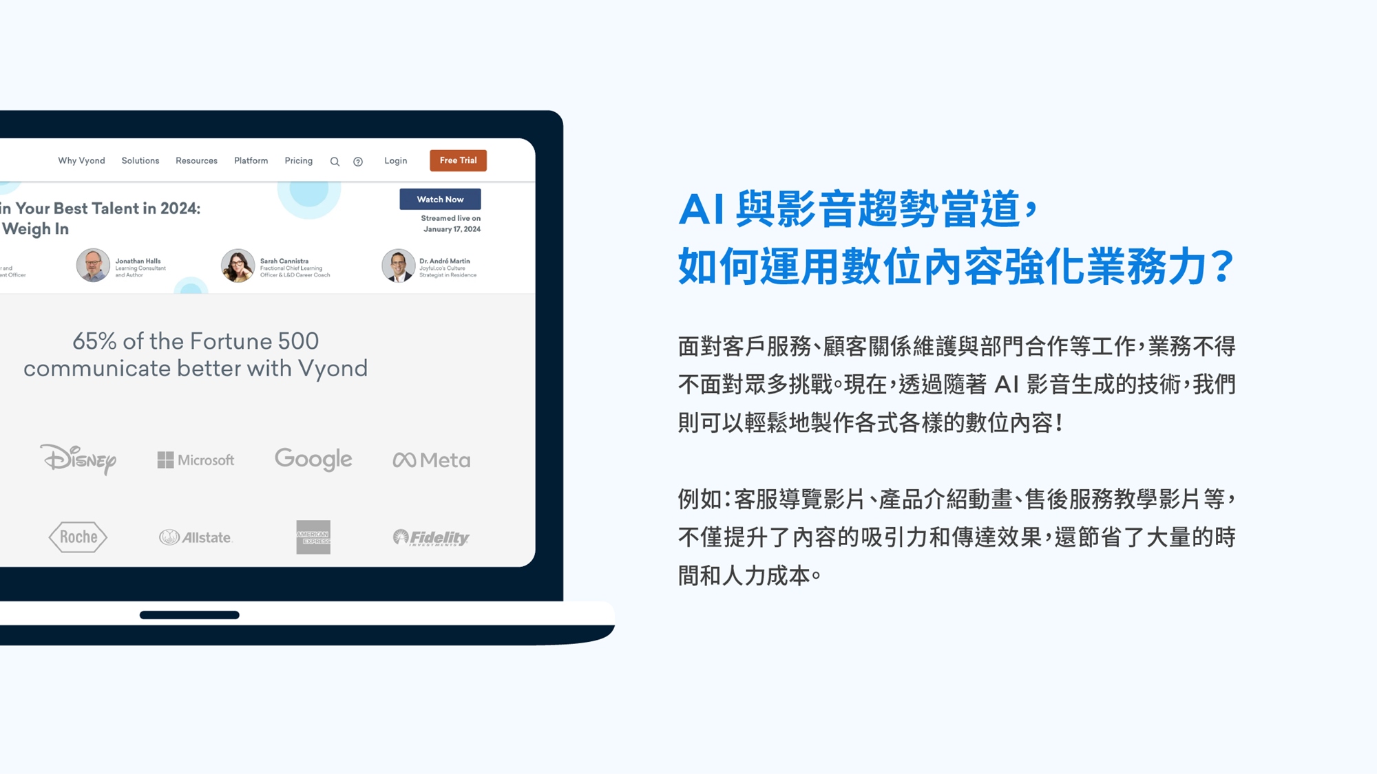 - 透過 Vyond 與 AI 生成技術優化客戶服務流程