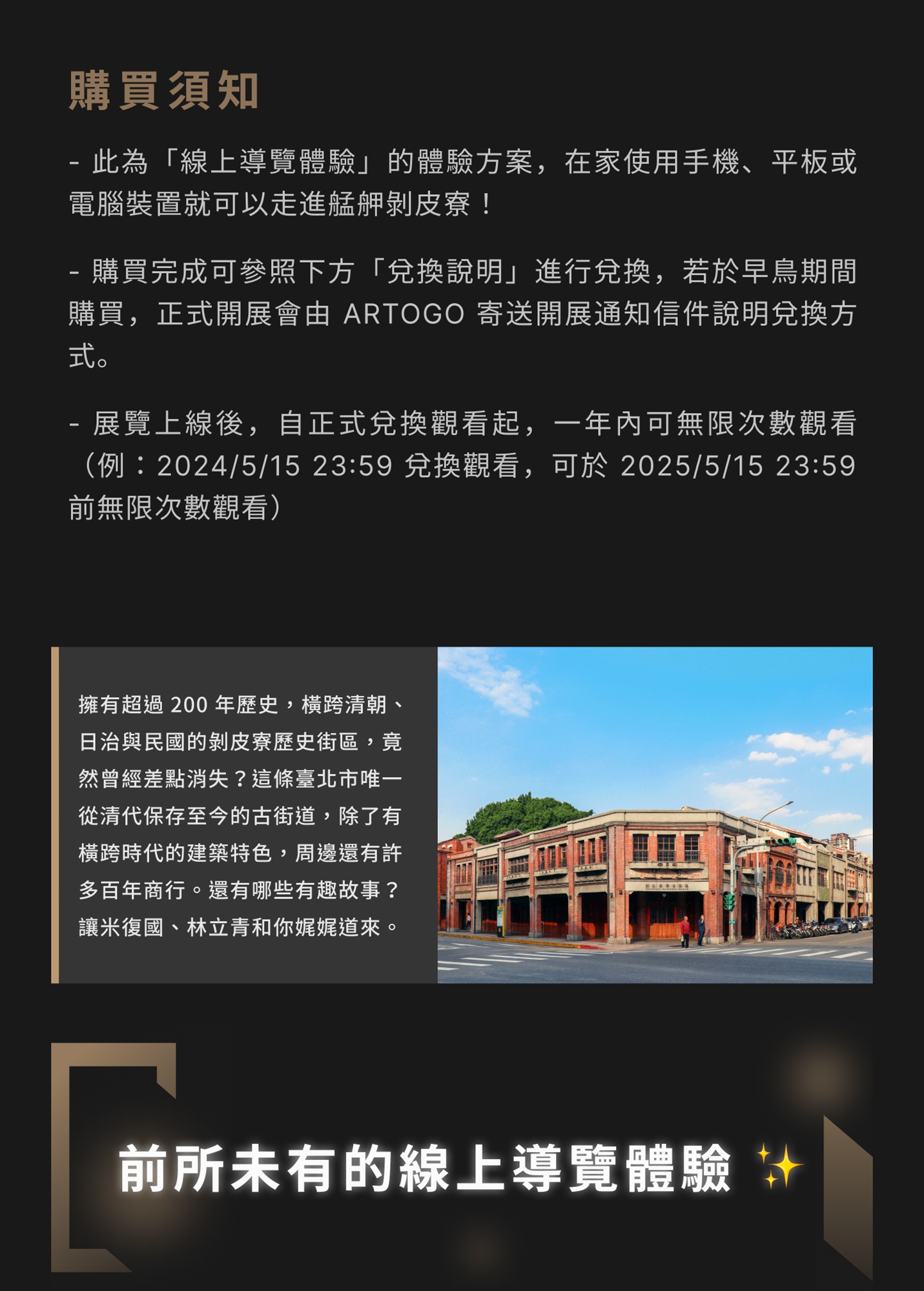 目前展覽尚為早鳥預售期間,尚未開放體驗,正式開展會由 ARTOGO 寄送開展通知信件說明兌換方式