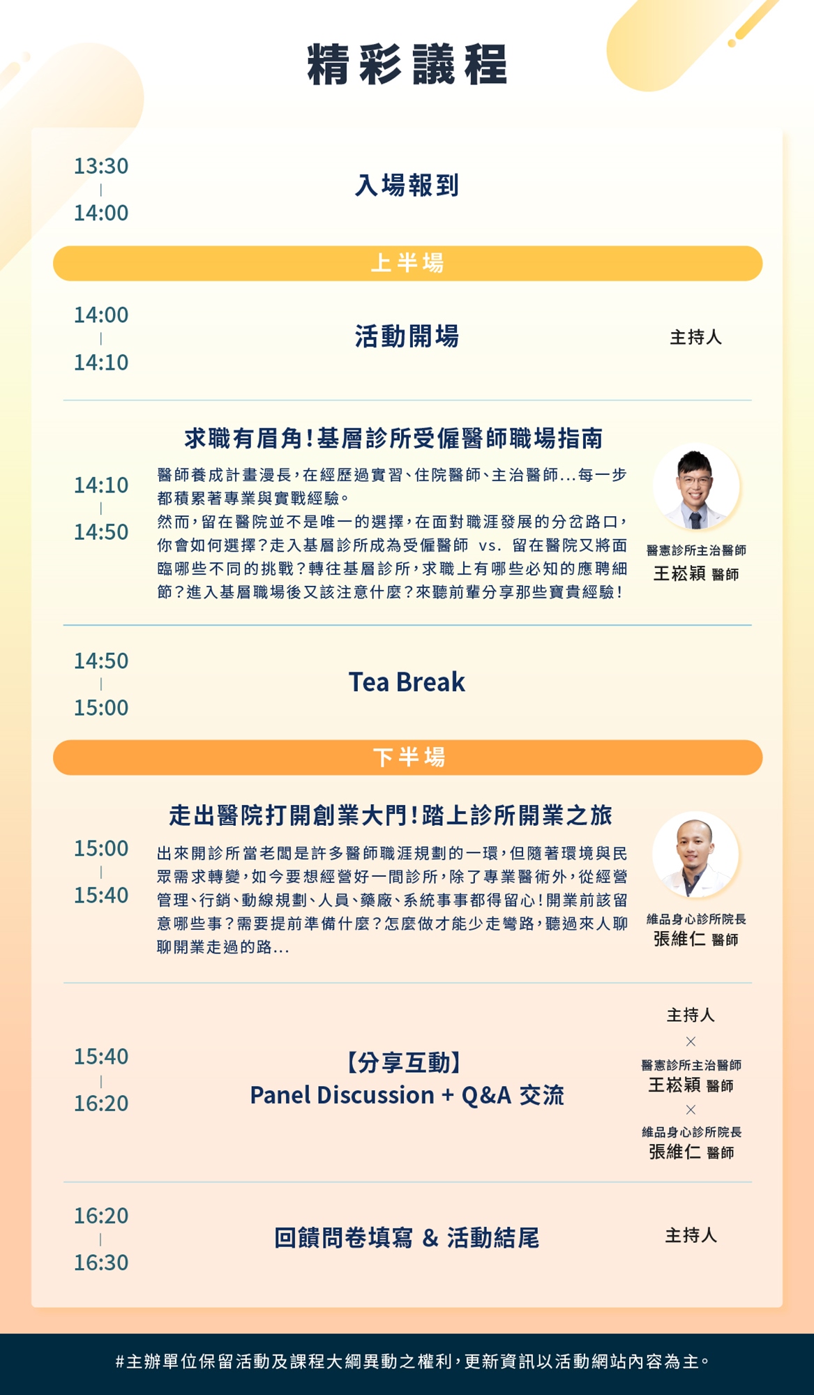 14:10 ~ 14:50 【 上半場 】求職有眉角!基層診所受僱醫師職場指南