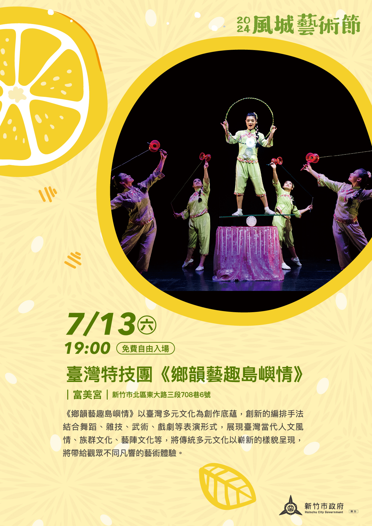 📌7/13(六)19:00,北區/富美宮,臺灣特技團《鄉韻藝趣島嶼情》