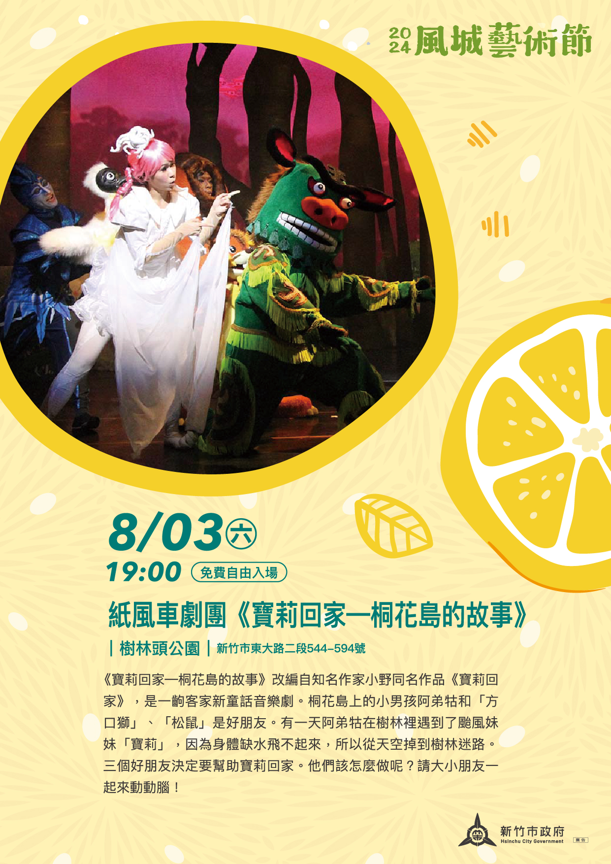 📌8/03(六)19:00,北區/樹林頭公園,紙風車劇團《寶莉回家-桐花島的故事》